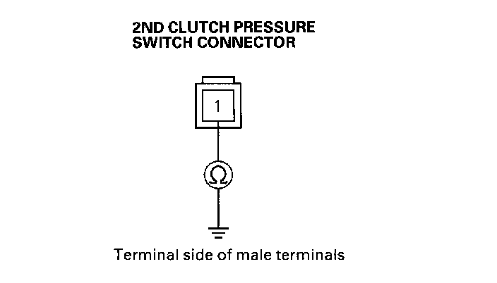 6. Measure the resistance between the 2nd clutch pressure switch connector terminal and body ground.