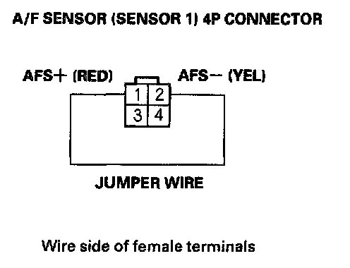 5. Connect A/F sensor (Sensor 1) 4P connector terminals No. 1 and No. 2 with a jumper wire.