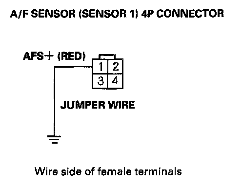 7. Connect A/F sensor (Sensor 1) 4P connector terminal No. 1 to body ground with a jumper wire.