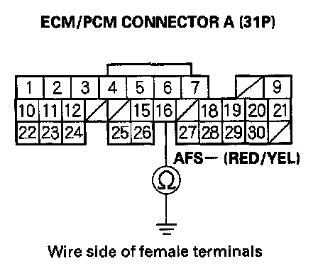 5. Check for continuity between ECM/PCM connector terminal A16 and body ground.