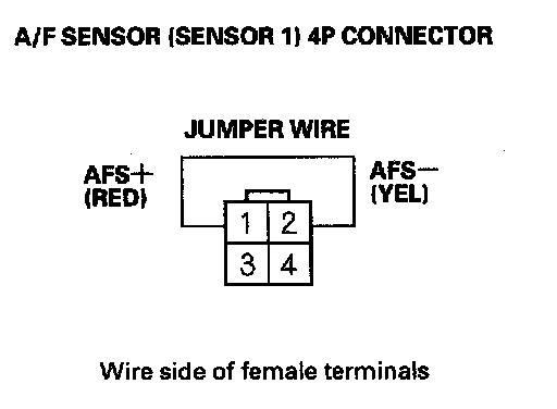 5. Connect A/F sensor (Sensor 1) 4P connector terminals No. 2 and No. 1 with a jumper wire.