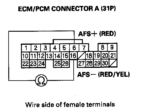 4. Disconnect the A/F sensor 4P connector and ECM/PCM connector A (31P).