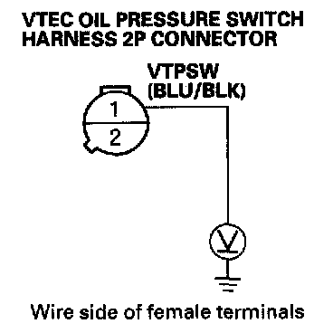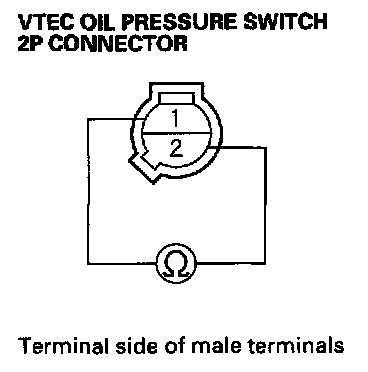 7. Check for continuity between VTEC oil pressure switch 2P connector terminals No. 1 and No. 2.