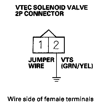 32. Connect VTEC solenoid valve 2P connector terminal No. 2 to body ground with a jumper wire.
