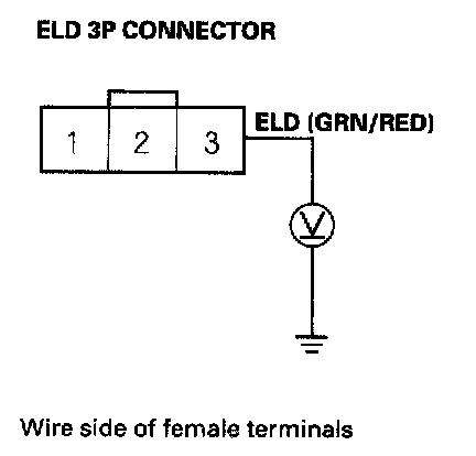 7. Measure voltage between body ground and ELD 3P connector terminal No. 3.