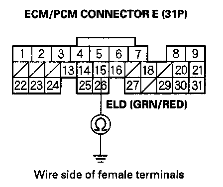 10. Check for continuity between body ground and ECM/PCM connector terminal E15.