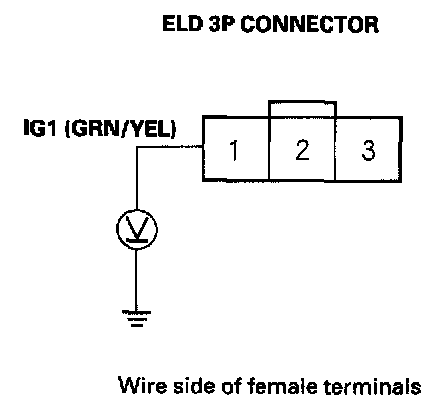 7. Measure voltage between body ground and ELD 3P connector terminal No. 1.