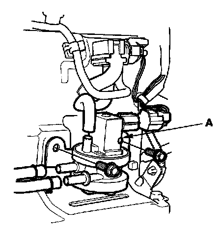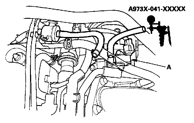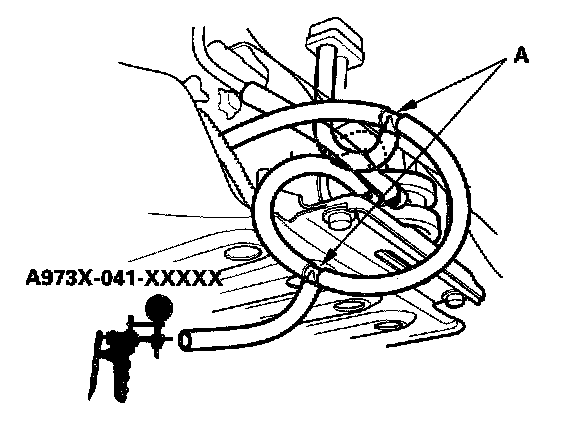 1. Disconnect the vacuum hose from the EVAP canister purge valve (A), and connect a vacuum pump to the valve.