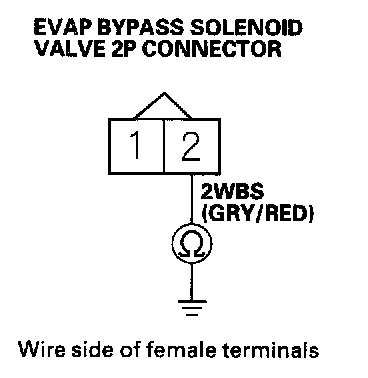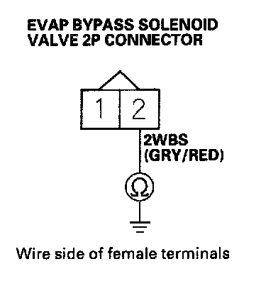 15. Check for continuity between EVAP bypass solenoid valve 2P connector terminal No. 2 and body ground.