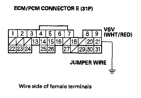 19. Turn the EVAP canister vent shut valve ON with the Honda PGM Tester, or connect ECM/PCM connector terminal E21 to body ground with a jumper wire.