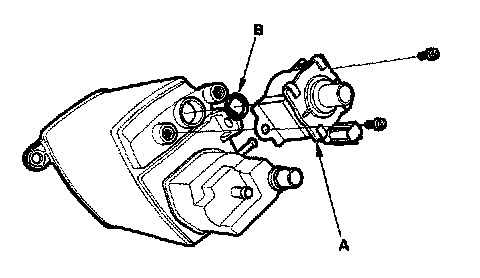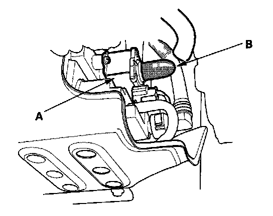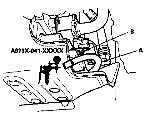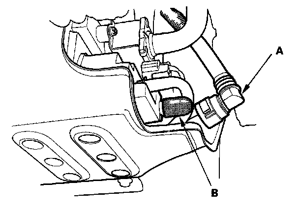 29. Remove the vent hose from the EVAP canister vent shut valve (A), and cap the port (B) to seal the fresh air vent of the EVAP canister.