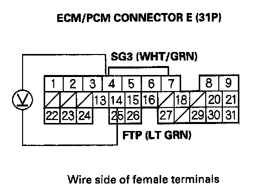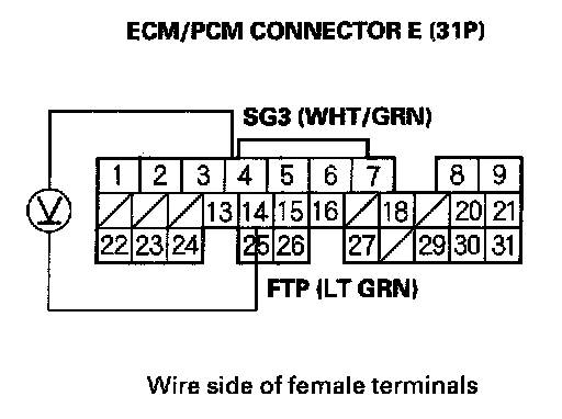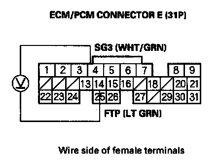 31. While monitoring FTP sensor voltage with the Honda PGM Tester, or measuring voltage between ECM/PCM connector terminals E4 and E14, slowly pump the vacuum pump.