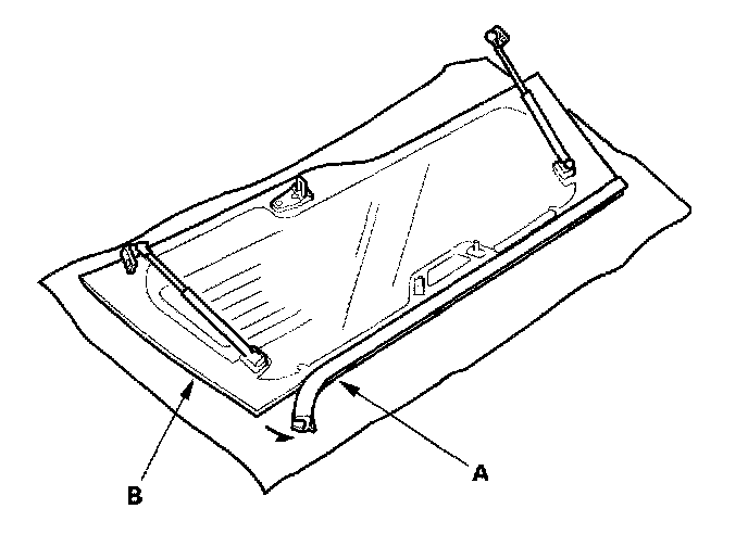 3. Remove the molding (A) from the upper edge of the hatch glass (B). If necessary, cut the molding with a utility knife.