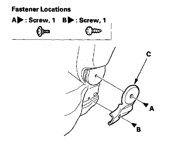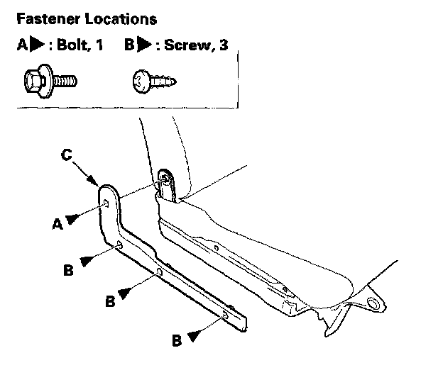 2. Remove the screws (A, B), then remove the recline cover (C).