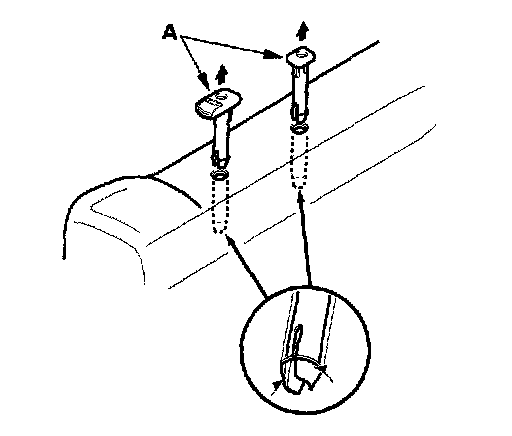 6. Pull out the headrest guides (A) while pinching the end of the guides, and remove them.
