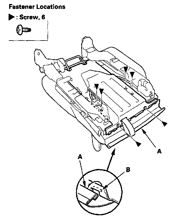 9. Pull back the rear edge of the seat cushion cover (A) to release it from the hooks (B), and remove the screws.