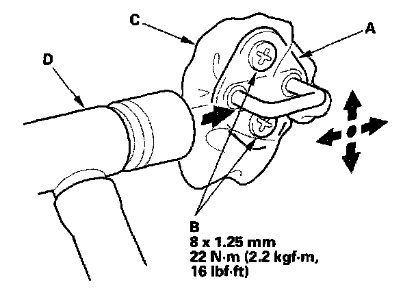 7. Hold the outer handle out, and push the tailgate against the body to be sure the striker allows a flush fit. If the tailgate latches properly, tighten the screws and recheck.