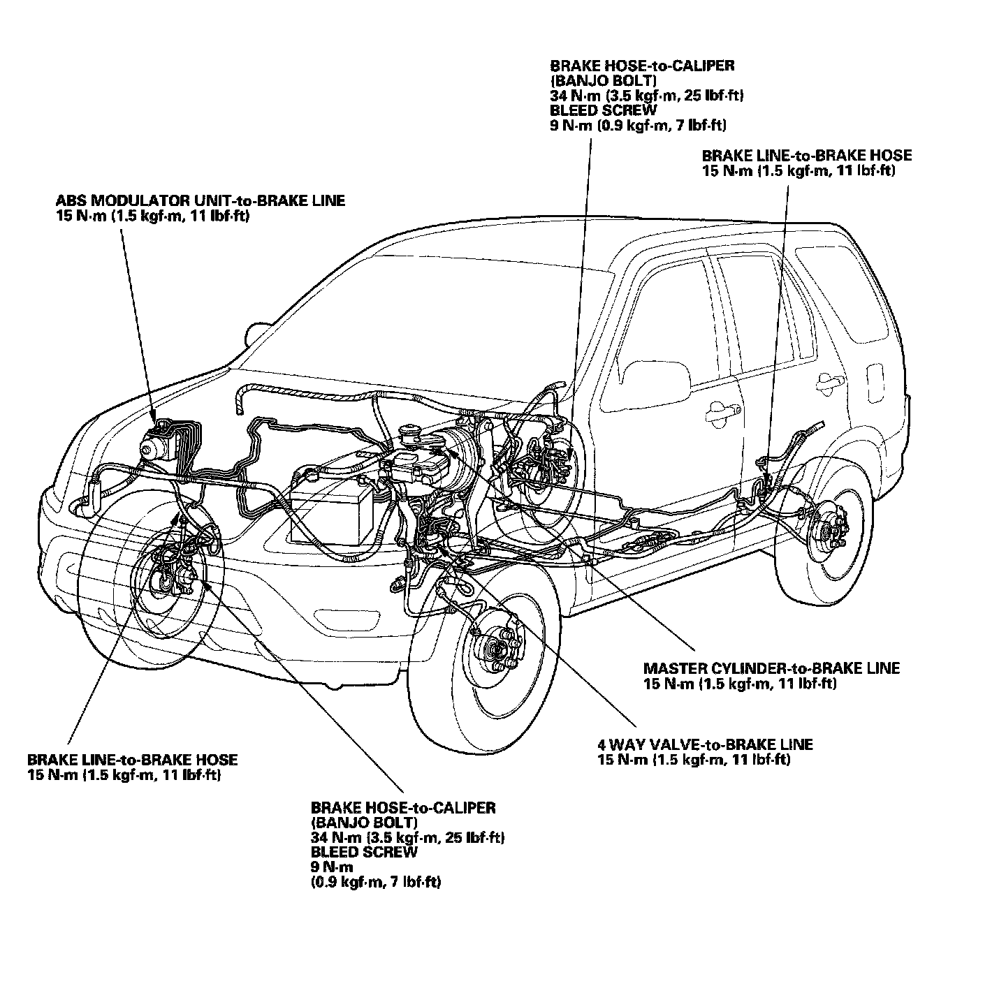 2. Check the brake lines for damage, rusting, and leakage. Also check for bent brake lines.