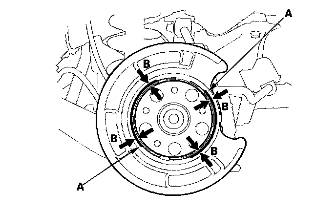 4. Measure the parking brake lining thickness (B). Measurement does not include brake shoe thickness.
