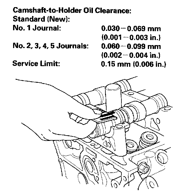 - If the camshaft-to-holder clearance is within limits, go to step 11.