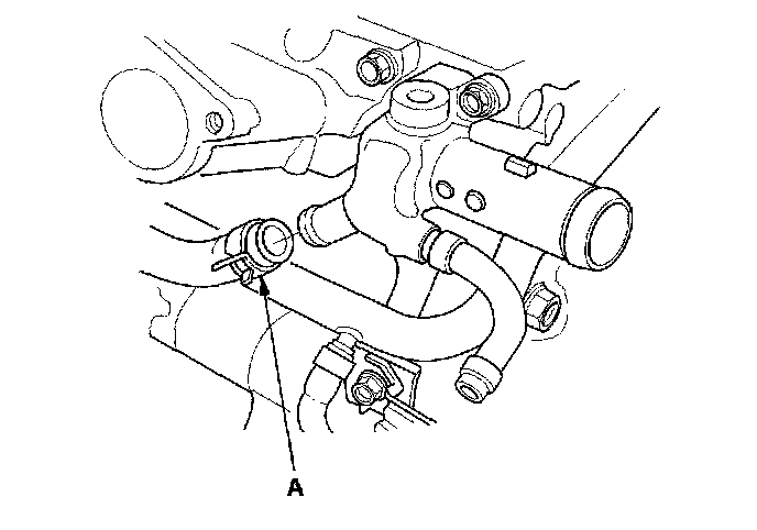 6. Remove the water bypass hose (A).