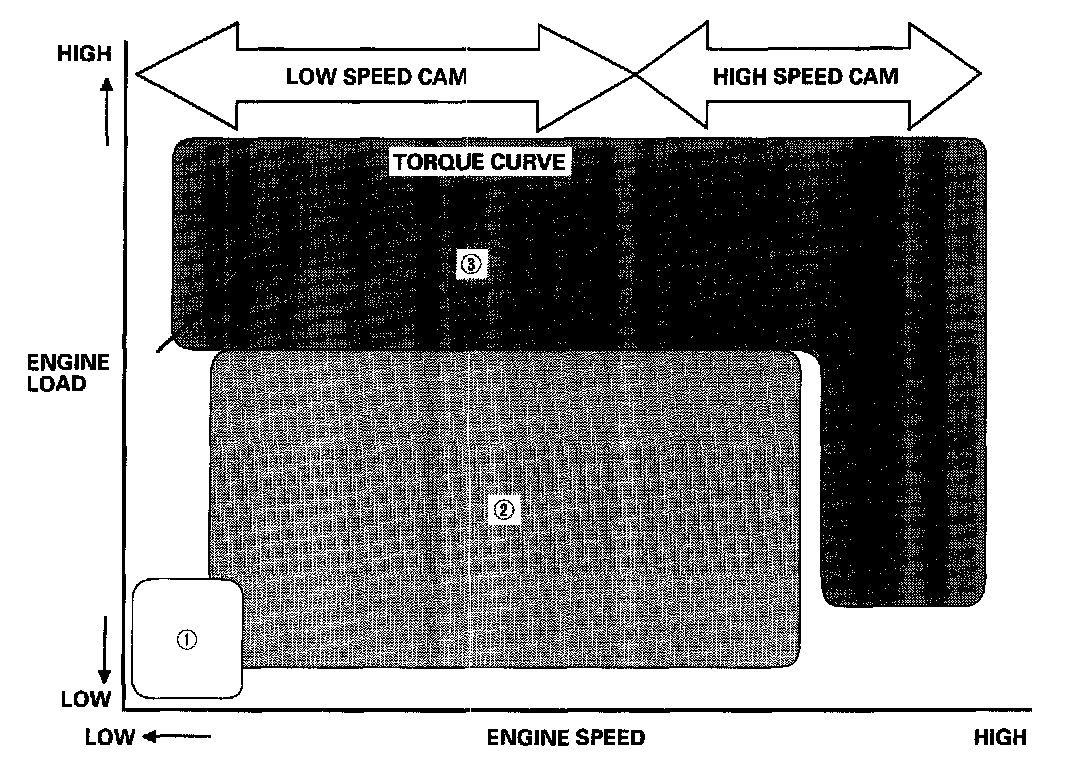 - The low lift cam is used at low engine speeds, and the high lift cam is used at high engine speeds.