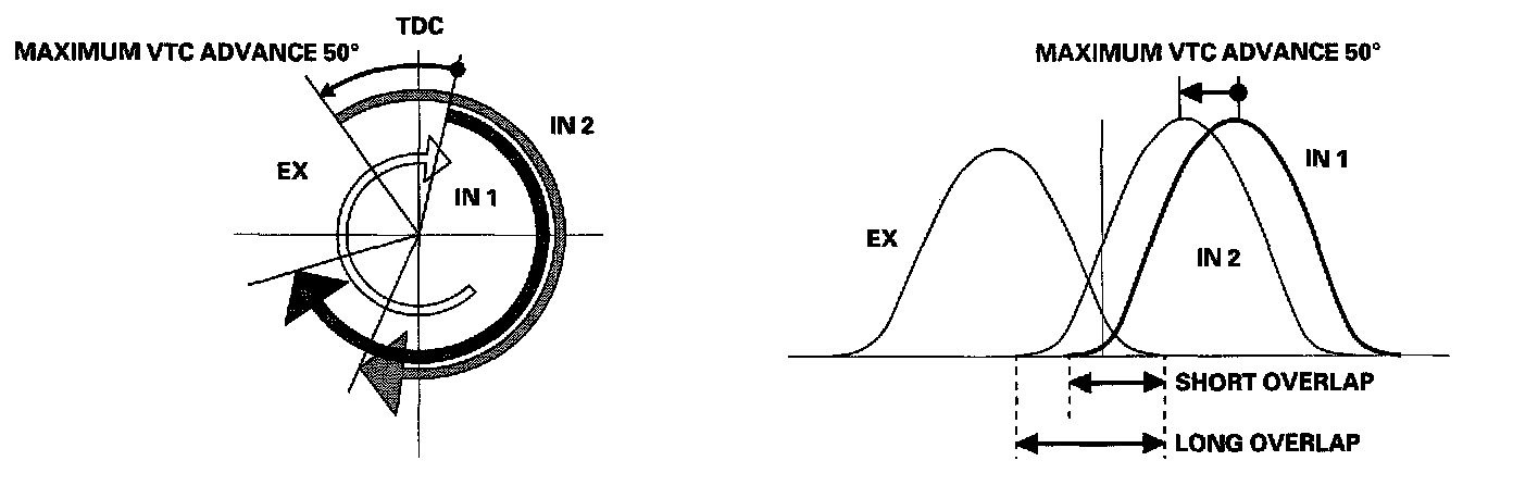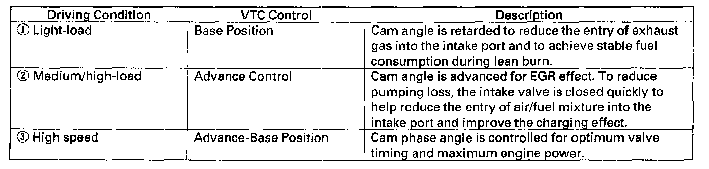 - The VTC system makes continuous intake valve timing changes based on operating conditions.