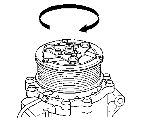 2. Check the rotor pulley bearing play and drag by rotating the rotor pulley by hand. Replace the clutch set with a new one if it is noisy or has excessive play/drag.