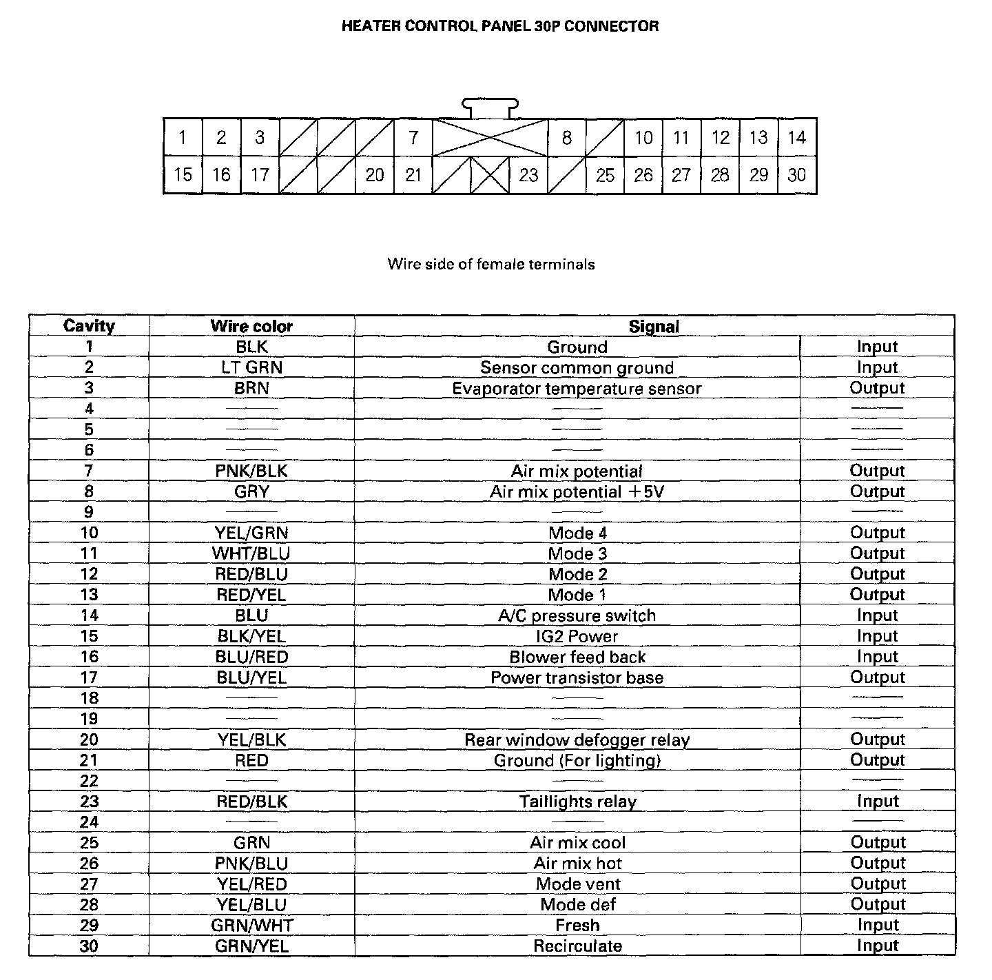Heater Control Panel Inputs And Outputs (30P Connector):