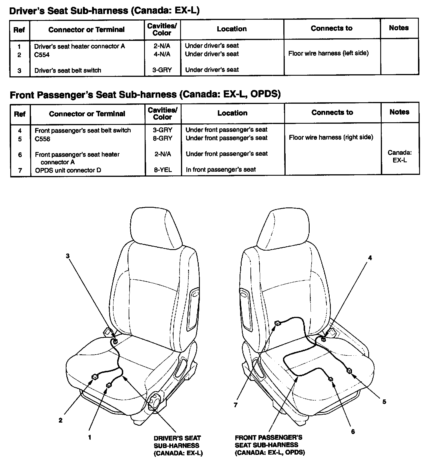 Driver's Seat Sub-harness (Canada: EX-L) / Front Passenger's Seat Sub-harness (Canada: EX-L, OPDS):