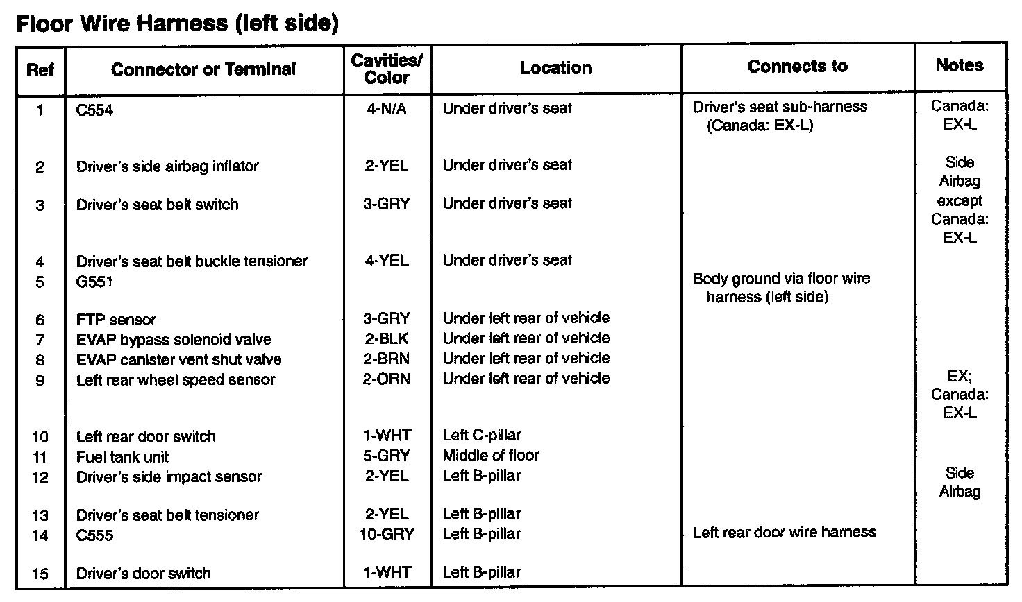 Floor Wire Harness (left Side):
