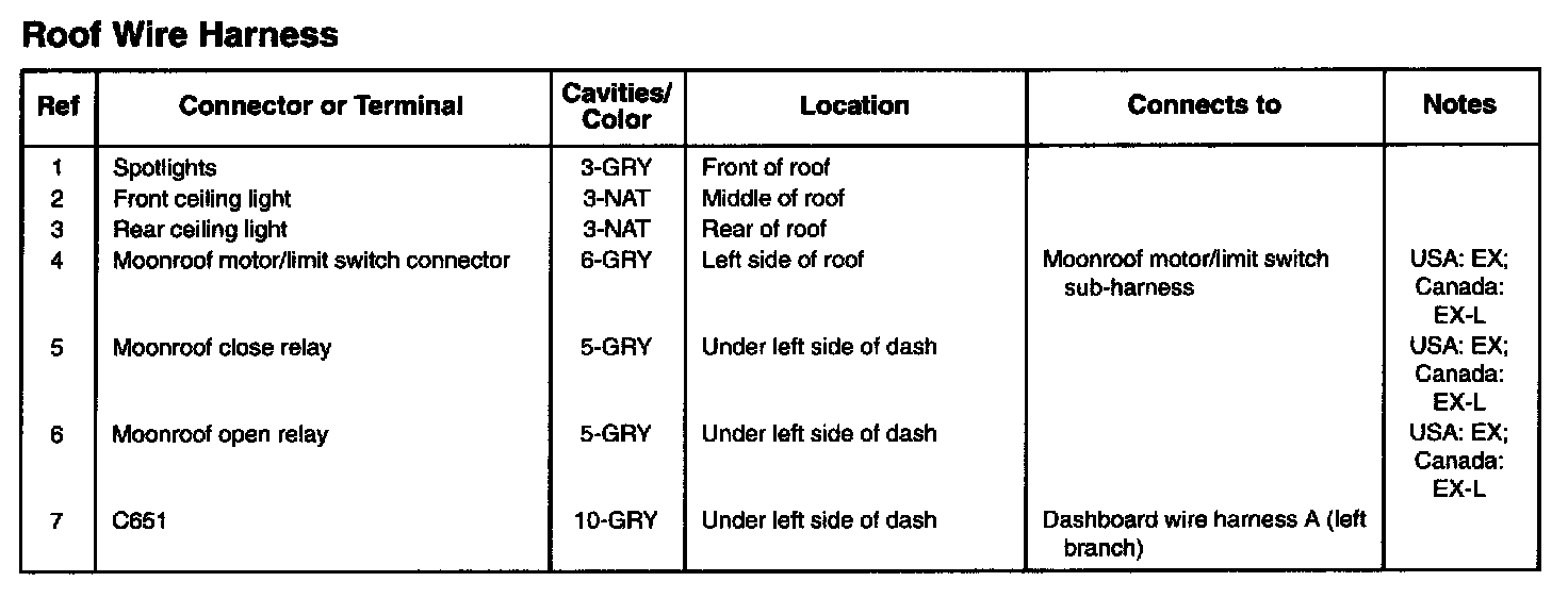 Roof Wire Harness: