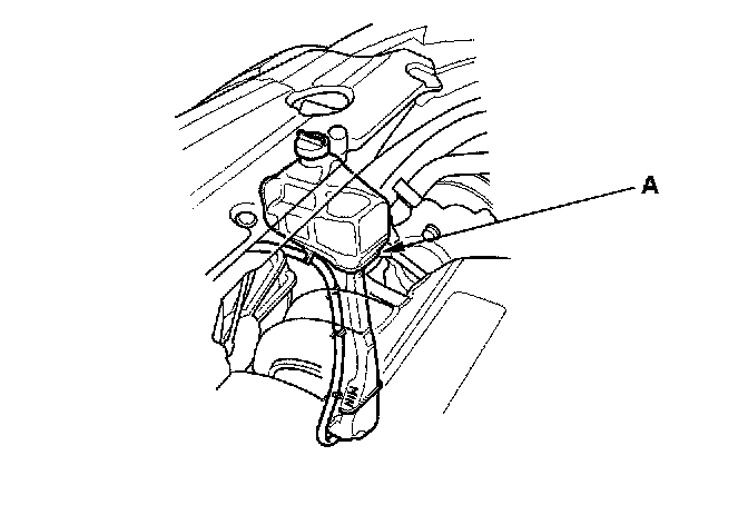 9. Fill the reserve tank to the MAX mark (A) with Honda All Season Antifreeze/Coolant Type 2.