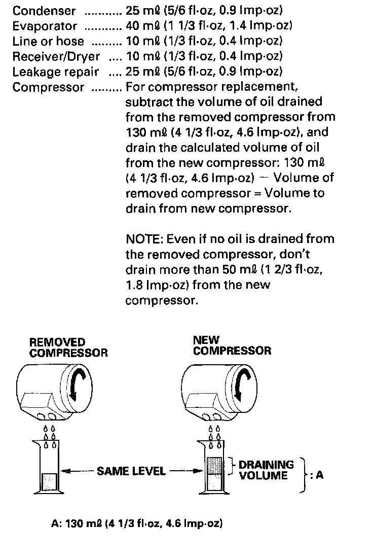 Add the recommended refrigerant oil in the amount listed if you replace any of the following parts:
