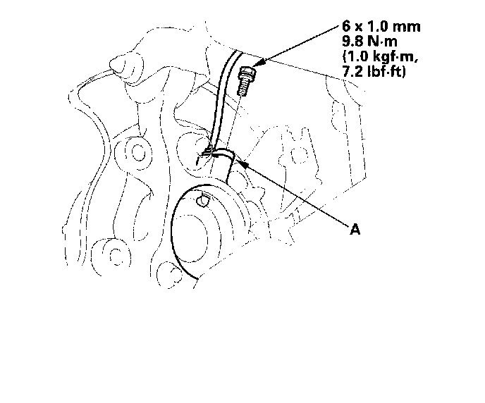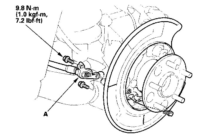 9. Remove the wheel sensor (A) from the knuckle (if equipped with ABS).