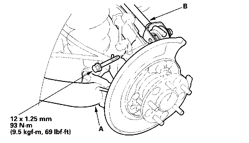 11. Remove the flange bolt, and disconnect the upper arm (B) from the knuckle.