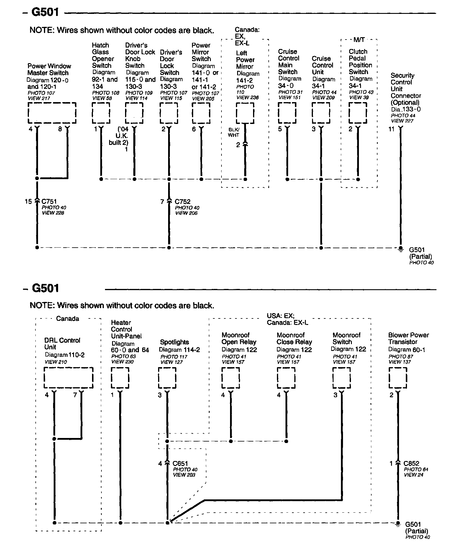 Connector Views: Connector terminal views (references to VIEWS) referred to within these diagrams can be found at Connector Views by View Number. Connector Views By View Number