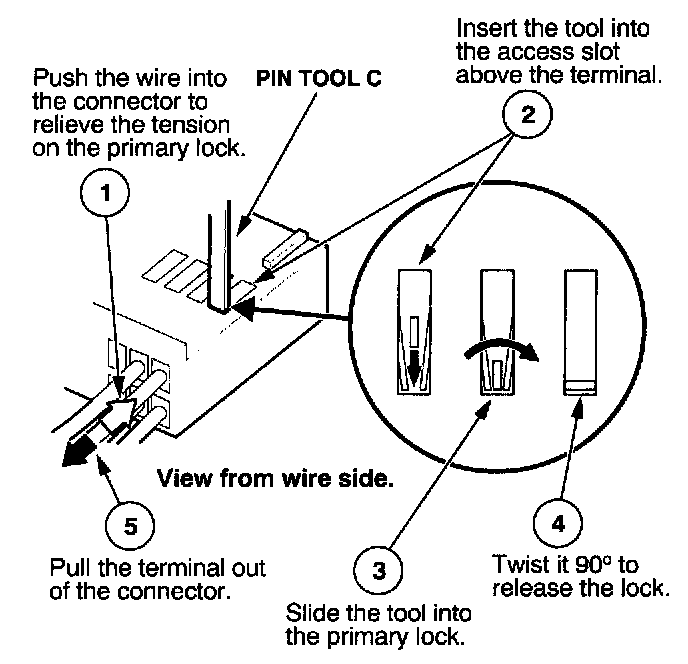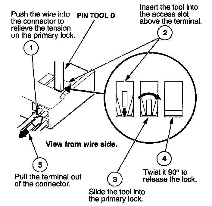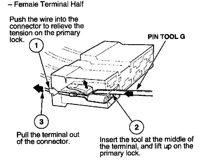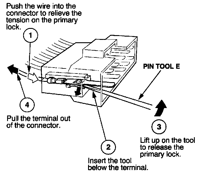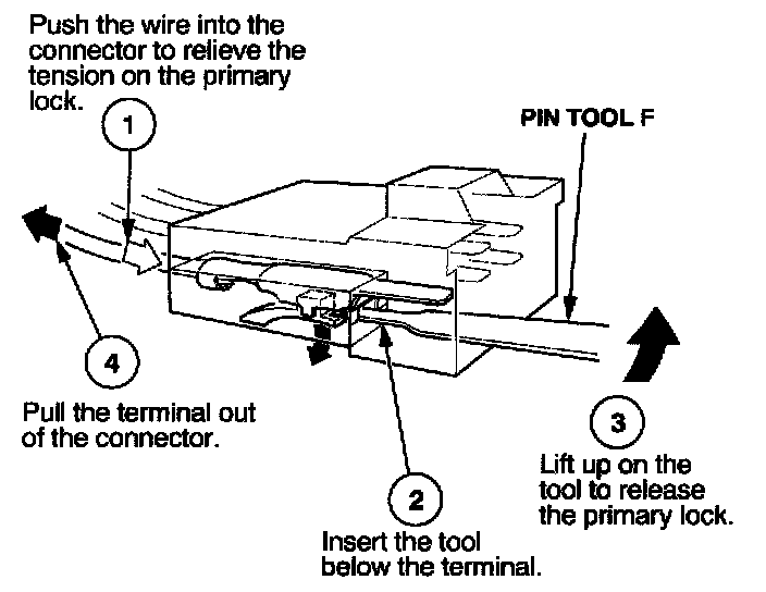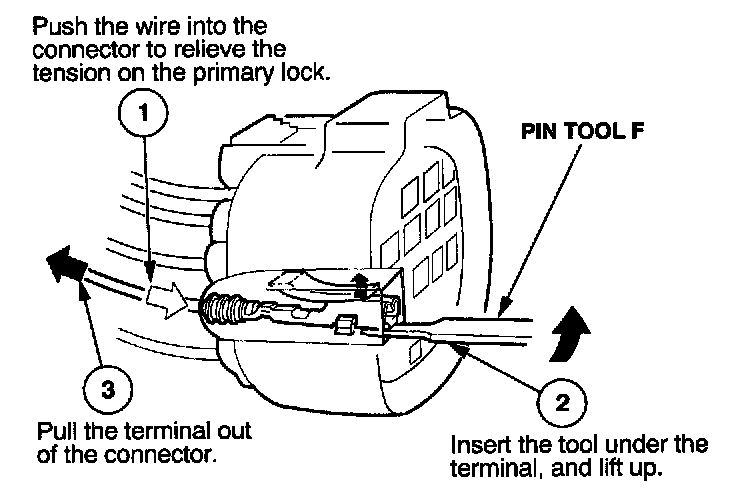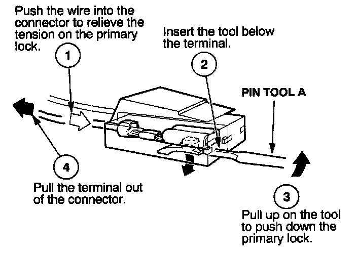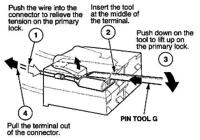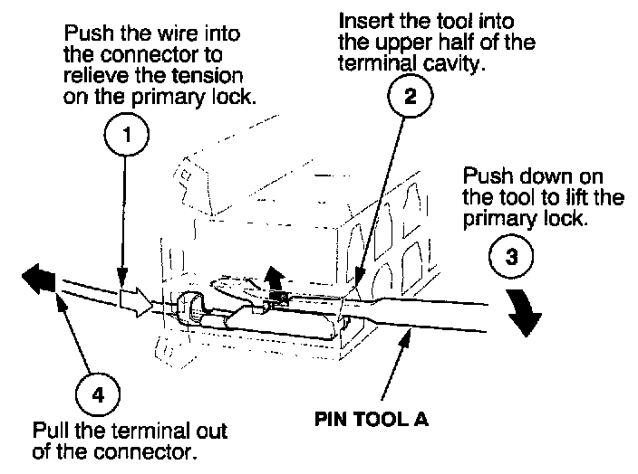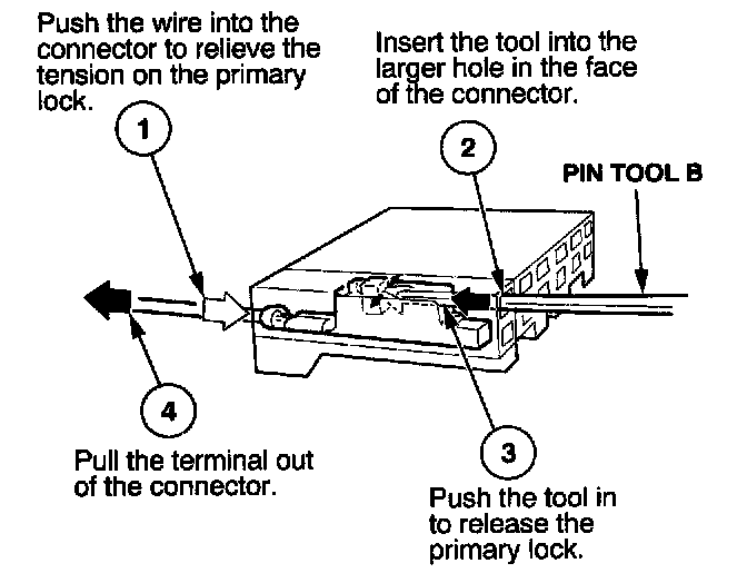 Before you begin, inspect the wire you are about to repair for damage and length. Make sure the wire will be long enough to make a terminal repair without stretching it when you reinstall the terminal in the connector. If the wire is too short, or if access to the connector is too restricted to make a terminal repair, you may need to install a pigtail terminal (a short length of wire with a factory-crimped terminal on it). Refer to HOW TO INSTALL PIGTAIL TERMINALS.
