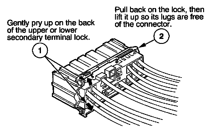 - If it has a secondary terminal lock, go to Connectors With a Secondary Lock. A secondary lock, found on most connectors on some models, is an additional locking device on the connector housing as a backup for the primary lock on the terminal.