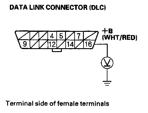 3. Measure voltage between DLC terminals No. 5 and No.16.