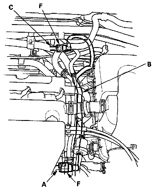 Fuel Line/Quick - Connect Fittings PrecautionThe fuel line/quick-connect fittings connect the fuel rail (A) to fuel feed hose (B), the fuel feed hose (B) to the fuel line (C), and the fuel tube (D) to the fuel tank unit (E). When removing or installing the fuel feed hose, fuel tank unit, or fuel tank, it is necessary to disconnect or connect the quick-connect fittings. Pay attention to the following: