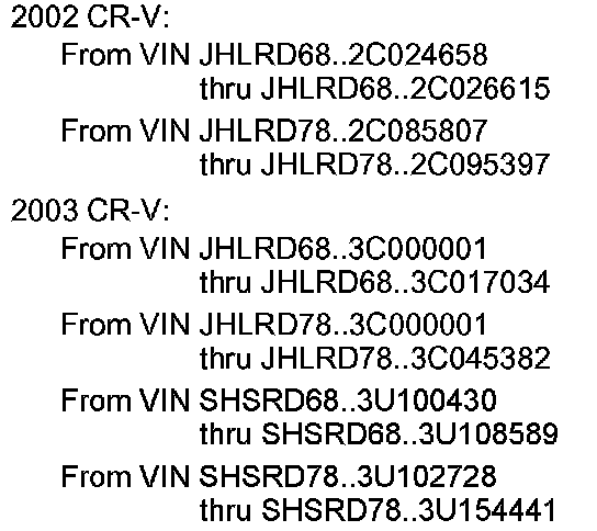 Safety Recall: CR-V A/T Shift Cable (Supersedes 03-047, dated September 2, 2003)