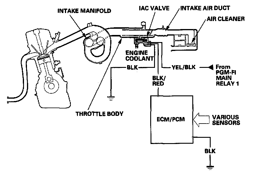 Idle Control SystemThe idle speed of the engine is controlled by the idle air control (IAC) valve: