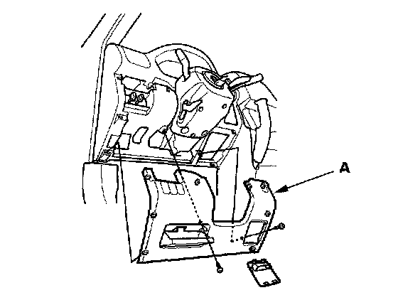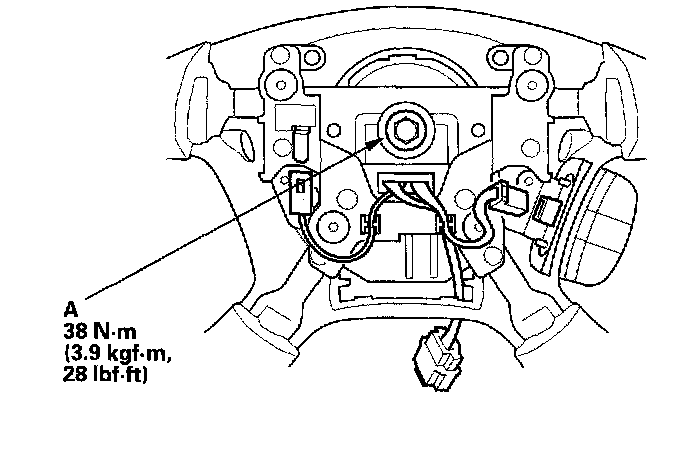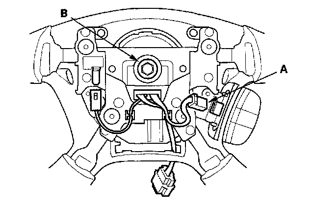 4. Disconnect the connector (A) from the cruise control set/resume switch, then remove the steering wheel bolt (B).