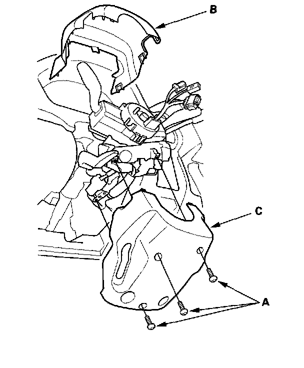 7. Remove the column cover screws (A), then remove the column covers (B, C).