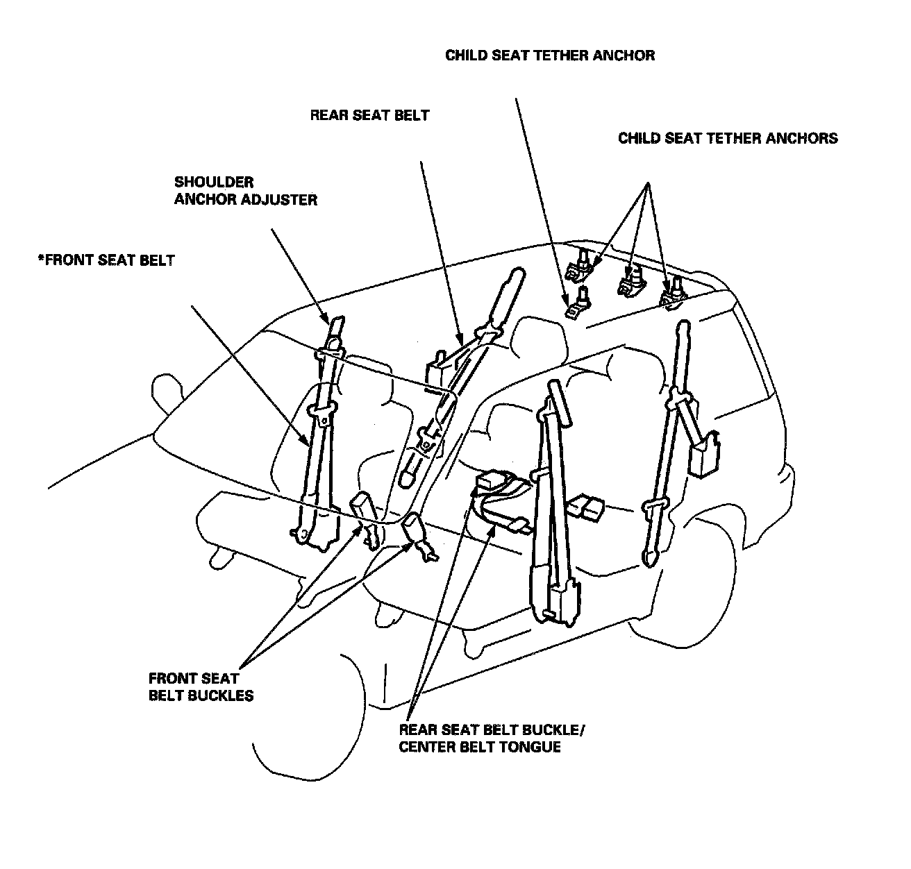 SRS components are located in the parts areas marked with an asterisk (*). Review the SRS component locations, precautions, and procedures before performing repairs or service.