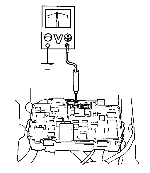 8. Turn the headlights (high beam) on, and measure voltage at the under-hood fuse/relay box terminal.