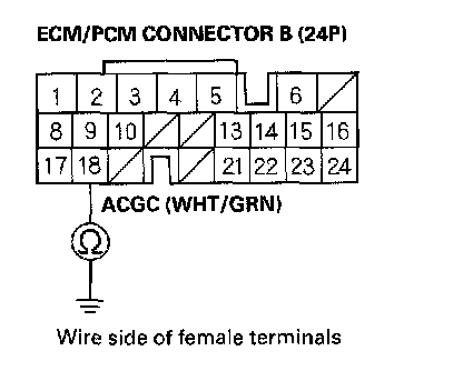 8. Check for continuity between ECM/PCM connector terminal B18 and body ground.