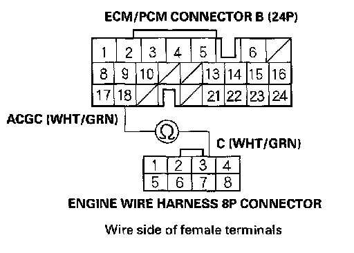 11. Check for continuity between ECM/PCM connector terminal B18 and engine wire harness 8P connector terminal No.3.