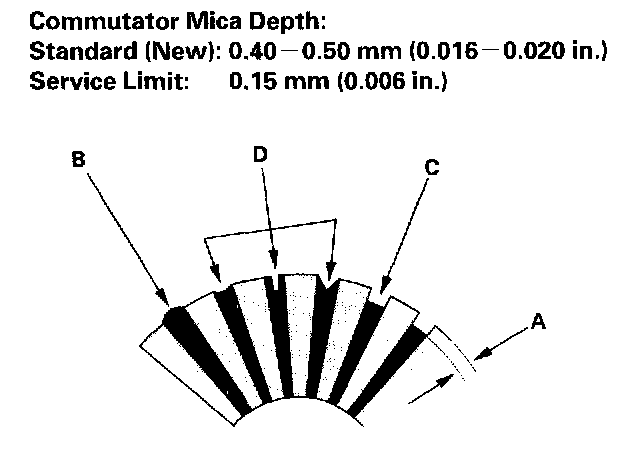 - If the commutator runout is within the service limit, check the commutator for carbon dust or brass chips between the segments.